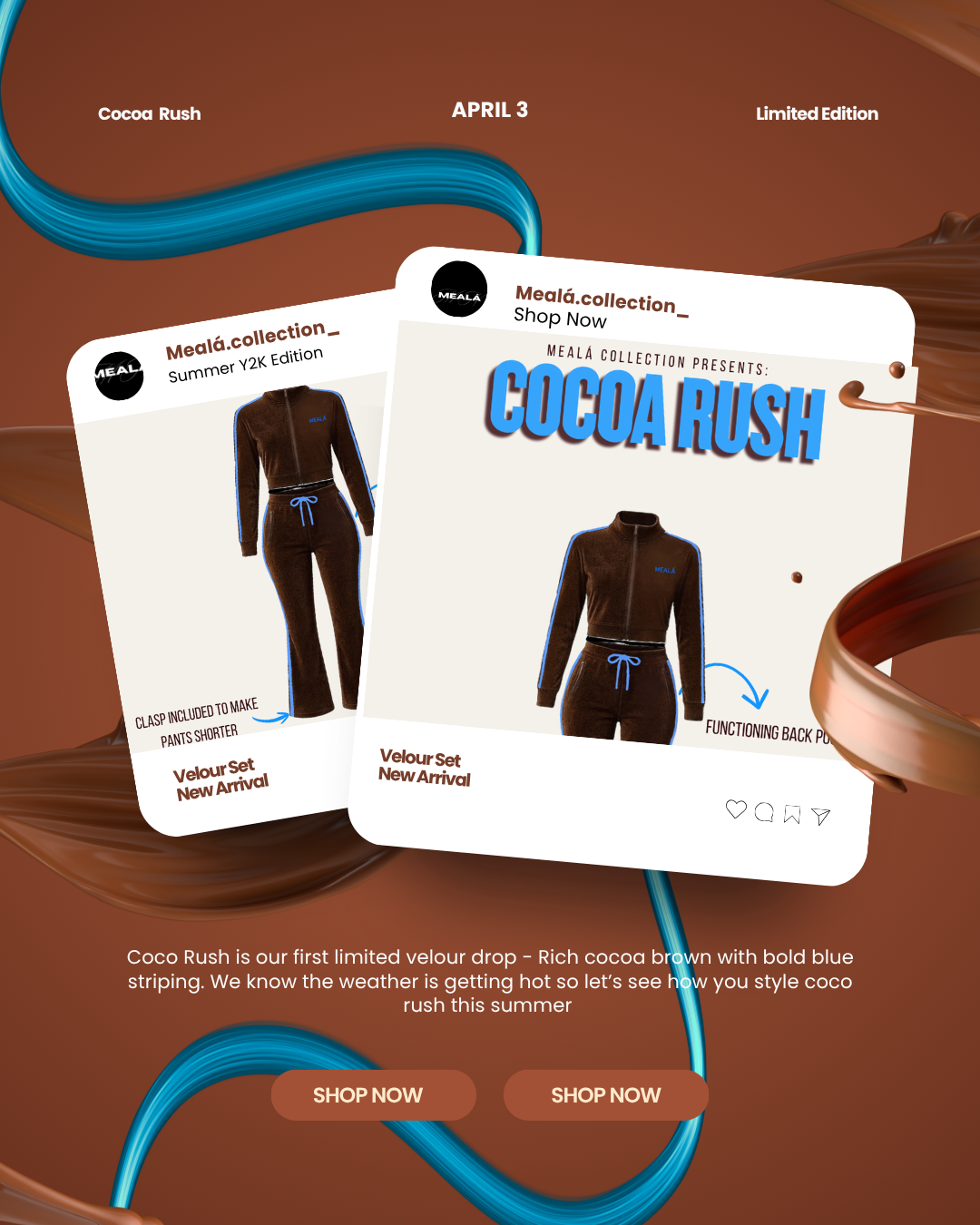 Introducing Cocoa Rush Velour Set - a fresh take on tracksuit style . Crafted from soft velour and outlined with vibrant blue contrast, this set brings a clean elevated energy to your everyday wadrobe. Wear it outside, Wear it on the go it's comfort that meets confidence. Design to move with you from errands to evenings out.